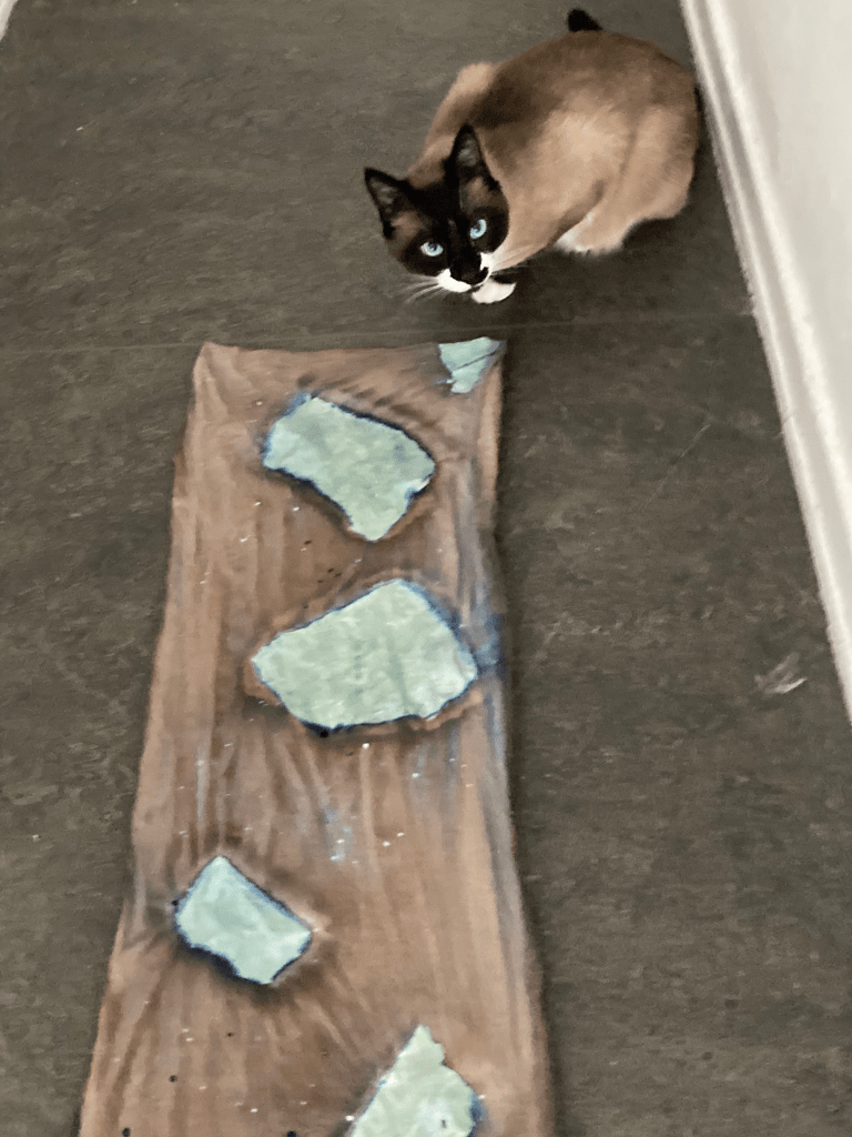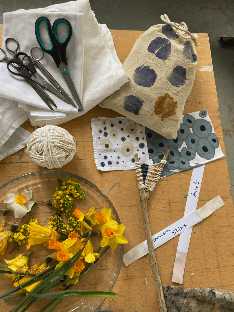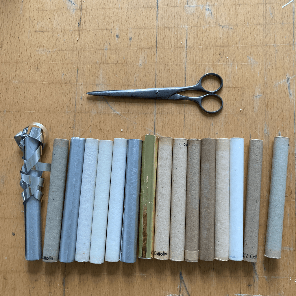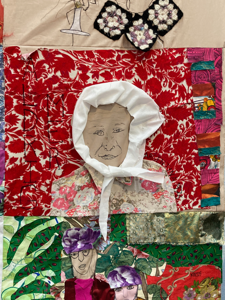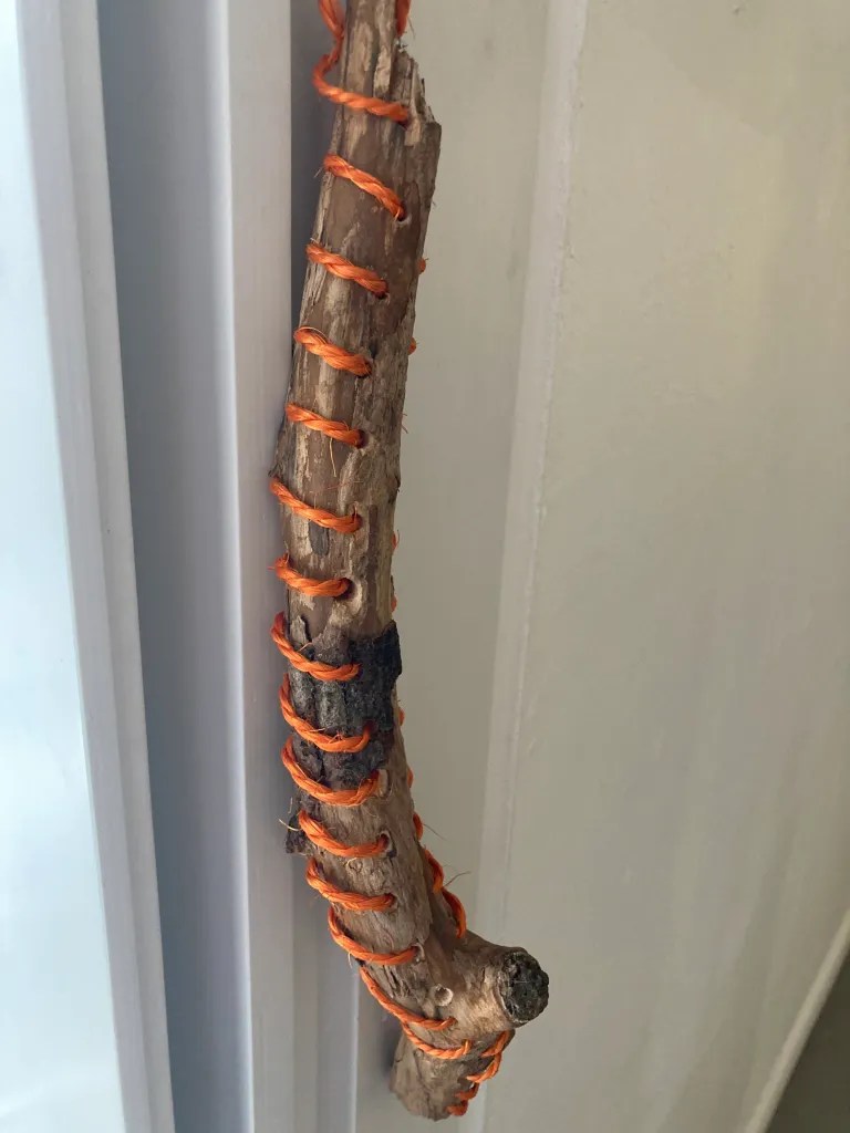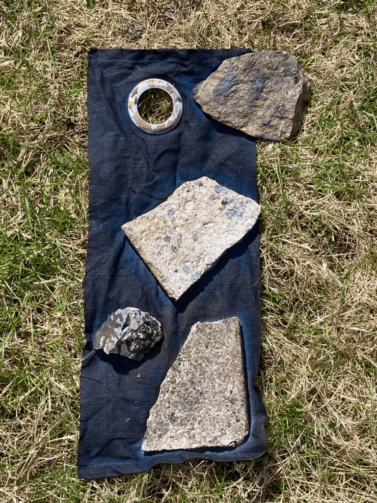 And the last stitch of the lollipop rag rug, begun in Week 1.