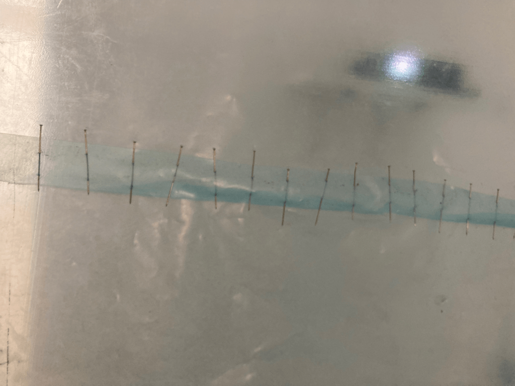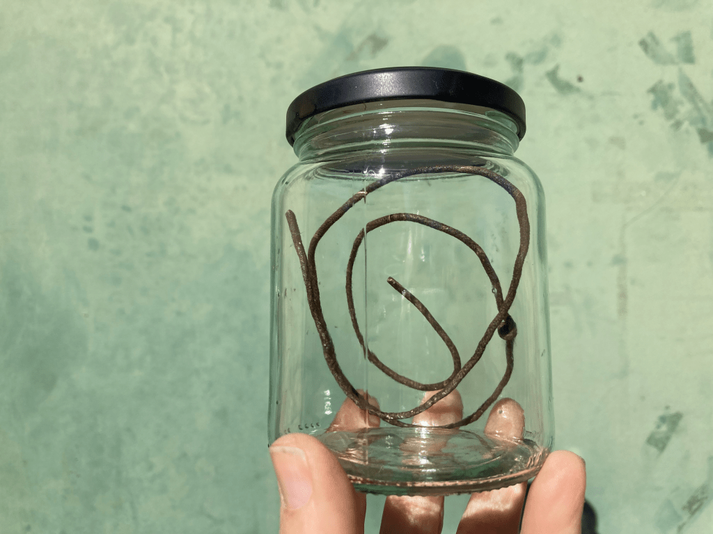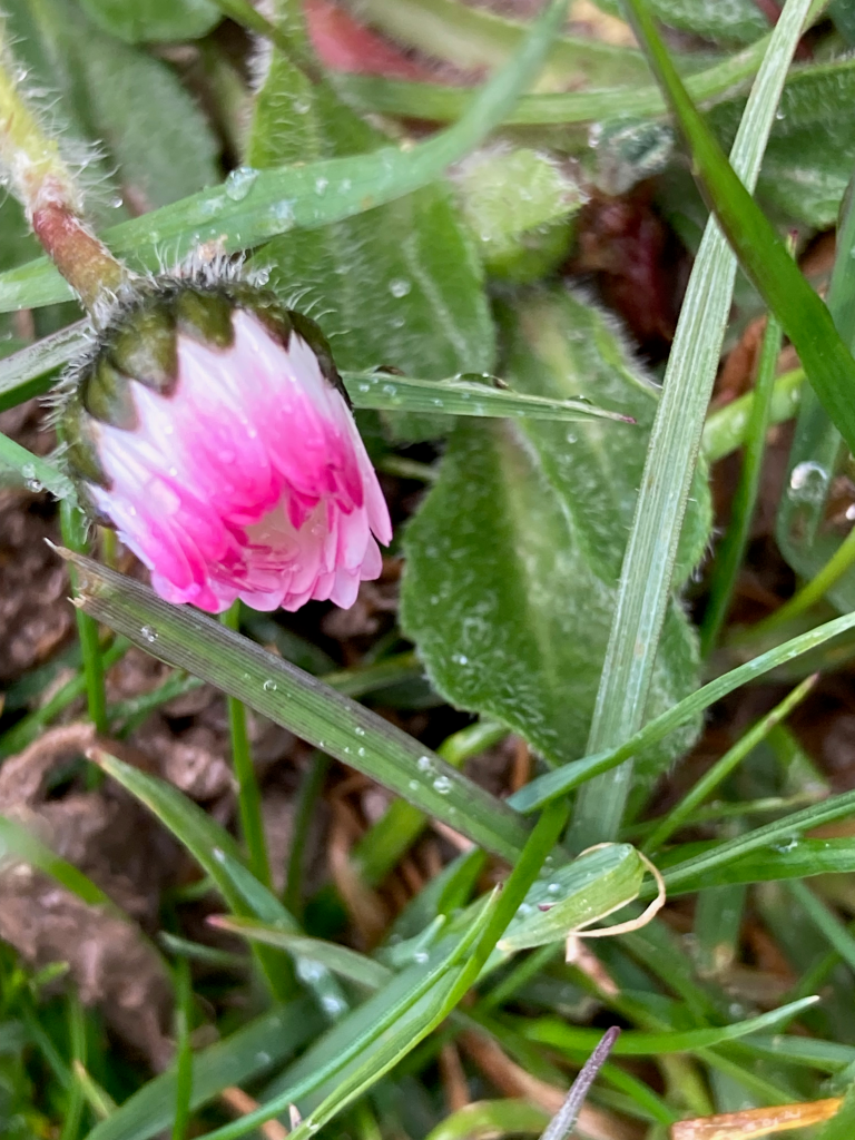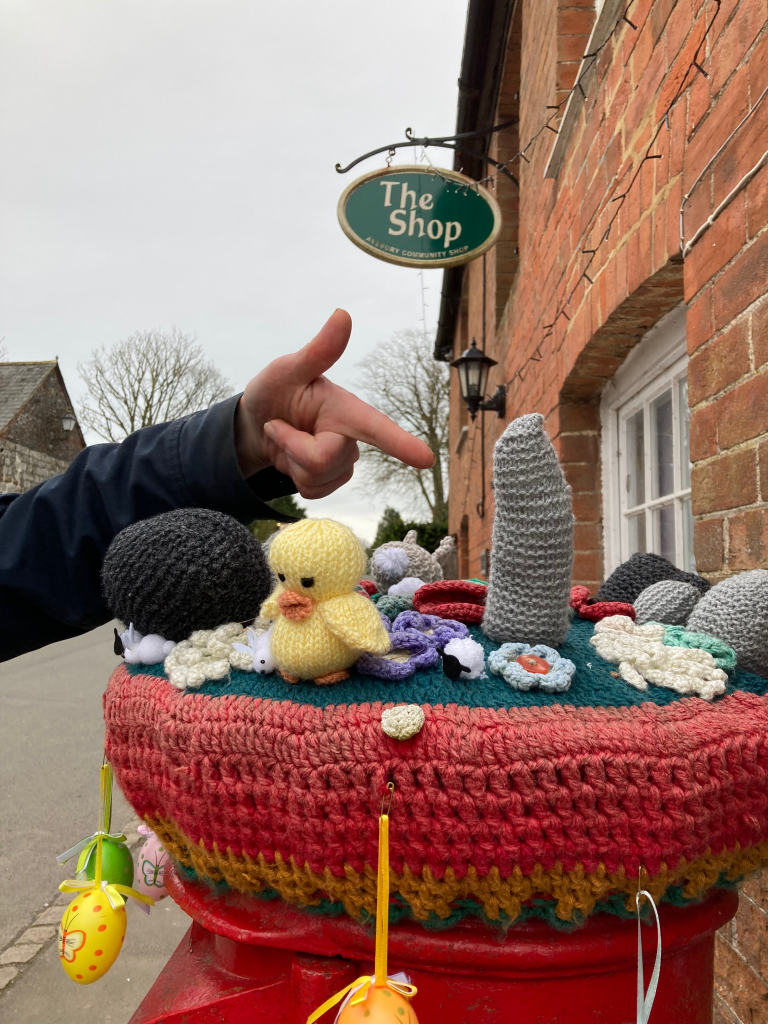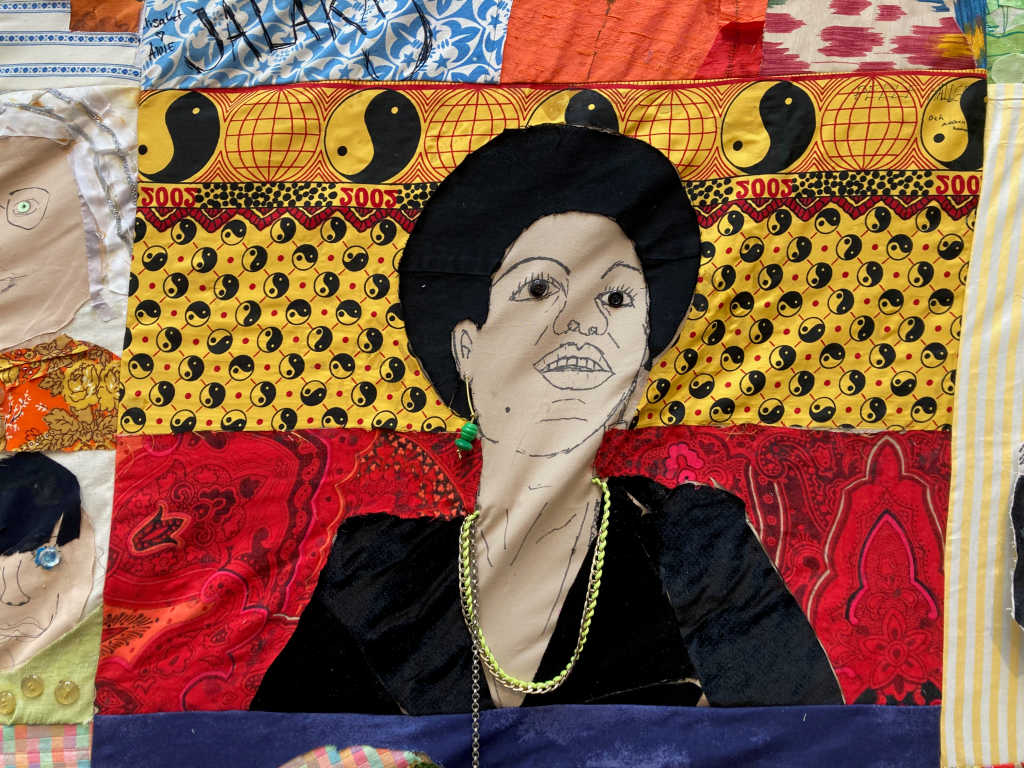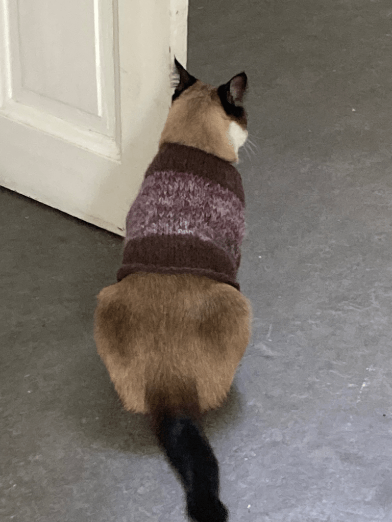 And the last stitch of the lollipop rag rug, begun in Week 1.