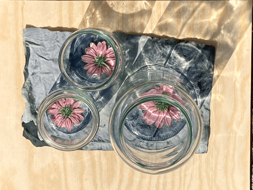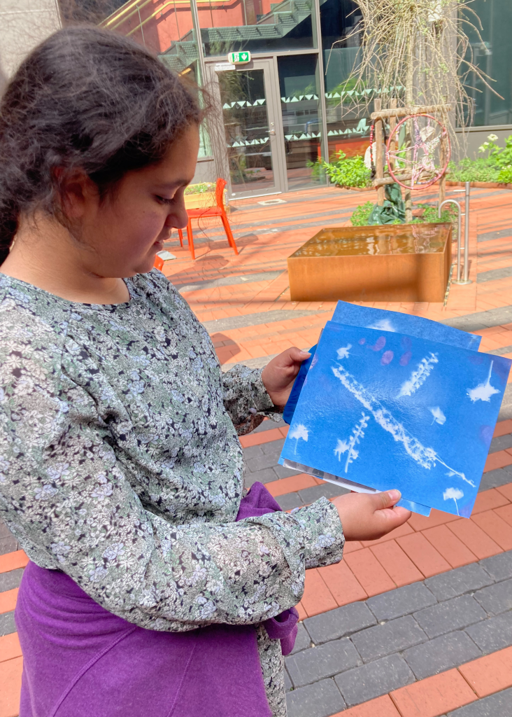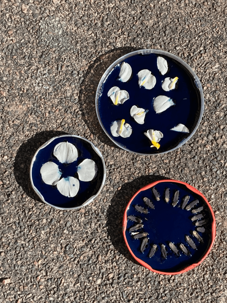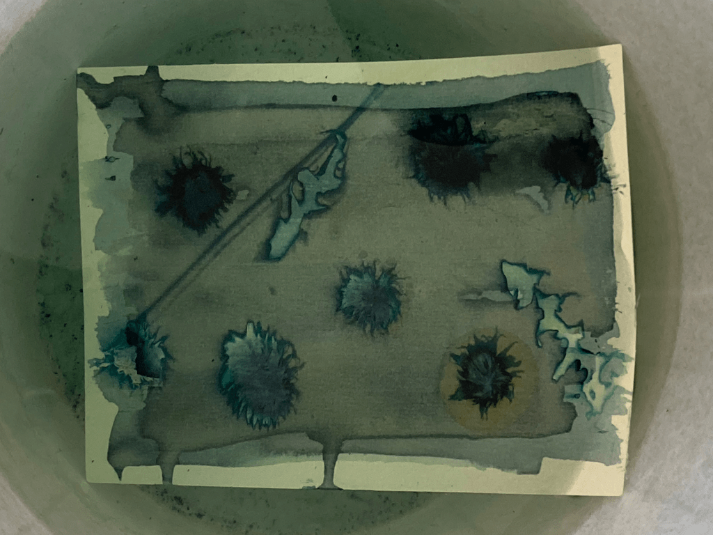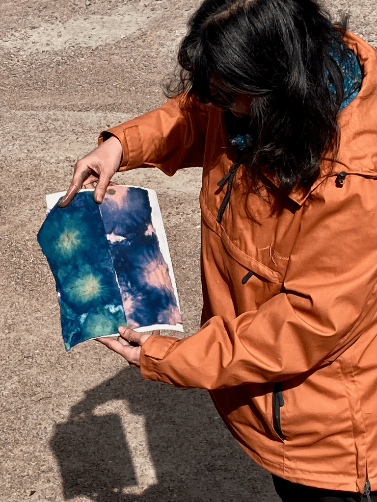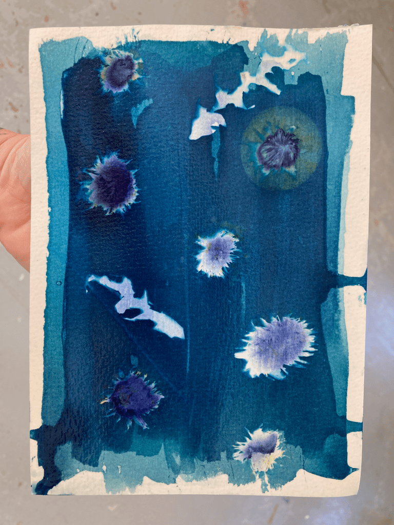 Midnight blue cyanotypes thrown out to the night sky