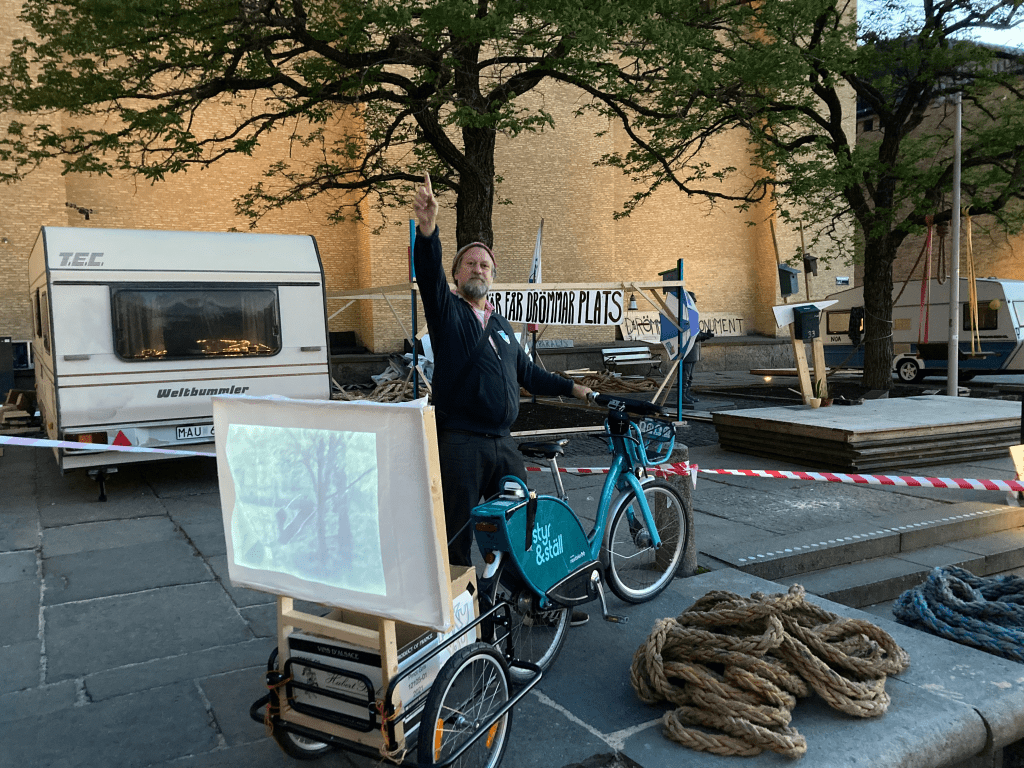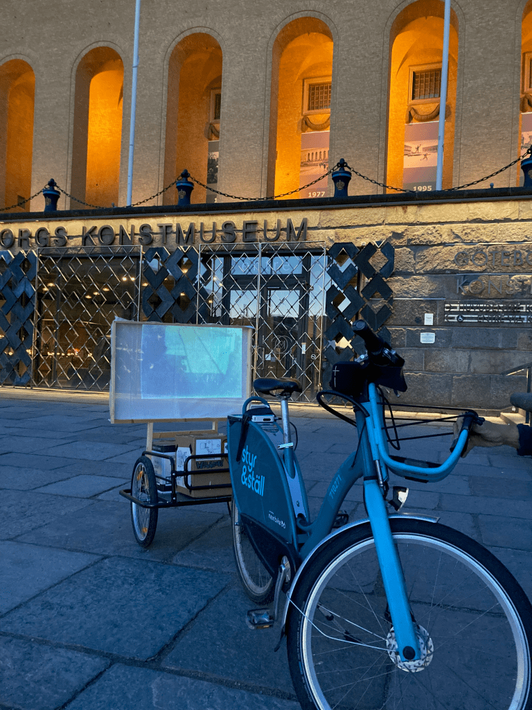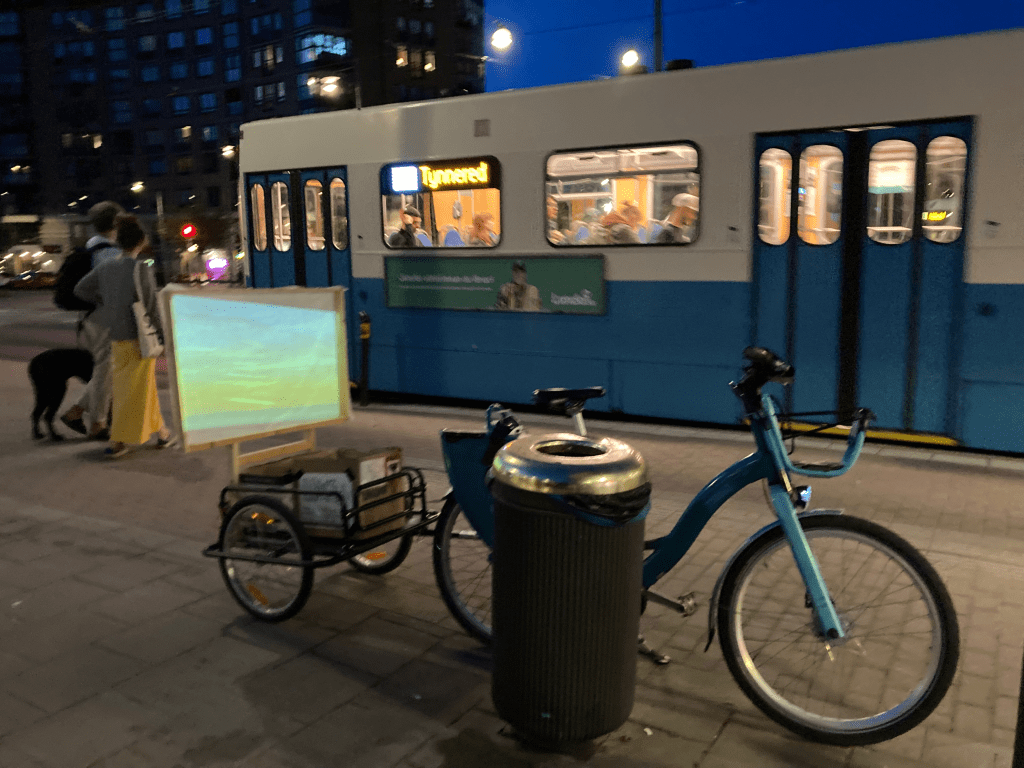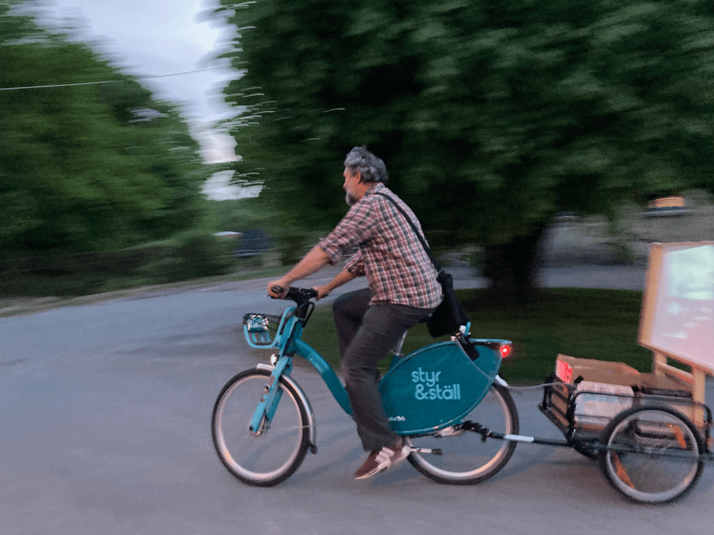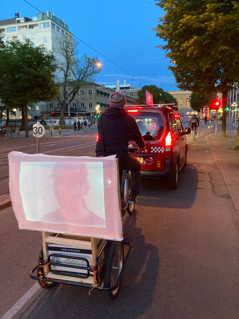 Twilight Filmcycle screenings every night from one side of town to the other featuring films and photographs made in community during the past 3 months in Sweden